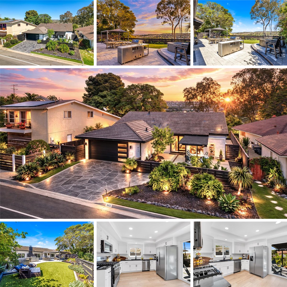 Welcome to your dream single-level mid-century home with a 70’s twist—where style, space, and that unmistakable “let’s have a martini (or mocktail) at sunset” vibe all come together. Set on an expansive 10,065 sq ft lot (rare for the area) this 3 bedroom, 2.5 bathroom home offers approximately 1,951 sq ft of thoughtfully curated living space, all wrapped in effortless coastal energy in one of San Clemente's most desirable areas. Inside, wide plank wood flooring in a soft, beach-inspired finish grounds the space, while curated updates throughout bring a sense of cohesion and ease. The kitchen pairs crisp white cabinetry with solid slab dark stone countertops and a stainless steel appliance suite—both functional and visually striking. Entertaining is elevated here. Designed for both everyday living and entertaining, the oversized dining room is made for dinner parties, while the dedicated bar/lounge room - complete with a plumbed bar and a stunning pitched wood-beamed ceiling - sets the stage for relaxed evenings and unforgettable gatherings. The living room makes a statement of its own, centered around a bold black lava rock fireplace with a custom distressed wood mantle. The primary suite offers a quiet sense of luxury, complete with dual closets, scenic views, and a beautifully remodeled ensuite featuring a soaking tub, step-in shower, and dual vanity. Two additional bedrooms are well-proportioned and share an updated dual-sink hall bath, while a separate powder room adds convenience rarely found in homes of this size. Thoughtful upgrades include new dual-pane windows, a fully updated HVAC system with new ducting and attic insulation, and custom window coverings throughout. Step outside and experience the ultimate backyard setup - complete with new turf and pavers, a pergola with fire table, BBQ bar, spa, and updated fencing with new gates. An outdoor shower adds the perfect coastal touch - ideal for rinsing off after a beach day or surf session. Even the front yard is engaging, with lush landscaping, fruit trees, and a charming seating area under a pergola. With no HOA or Mello Roos, coastal breezes, canyon and Saddleback mountain views, and a location just minutes from the beach and the iconic downtown San Clemente scene, this is more than a home - it’s a lifestyle.