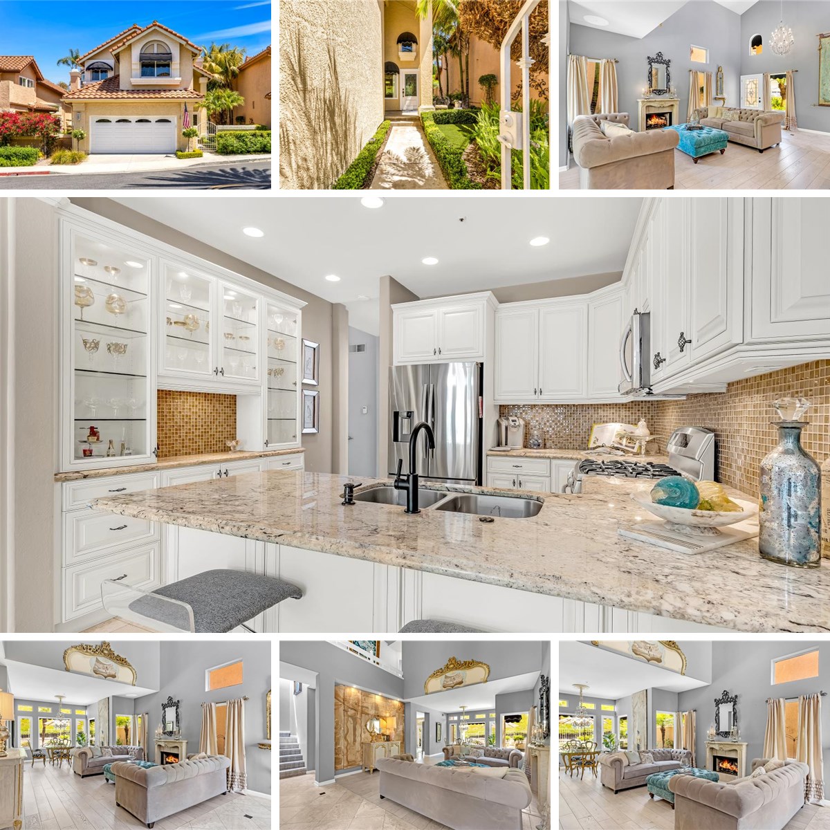 Introducing 9 Gema, offering the largest and most sought-after floor plan in the ocean-view community of Richmond Pointe. This beautifully updated 4-bedroom, 2.5-bathroom home offers 2,045 sq ft of living space and is currently the lowest priced 4-bedroom home in all of San Clemente—a rare opportunity you won’t want to miss. Step inside and be welcomed by the light-filled living room, featuring soaring two-story ceilings and a cozy fireplace, creating a warm and inviting space that flows seamlessly into the formal dining room—ideal for both everyday living and entertaining. A separate family room opens directly to the backyard, blending indoor and outdoor living with ease. Open to the family room is the remodeled kitchen, showcasing creamy white custom-glazed cabinetry, slab stone countertops, a glass tile backsplash, and stainless steel appliances. Timeless polished stone tile flooring runs through most of the lower level, except for the living and dining rooms, which feature custom wood flooring - and the bedrooms enjoy cozy plush carpet. The staircase is also upgraded with new custom carpet for a cohesive, fresh look. The main level powder room shines with a custom vanity, designer lighting, and Venetian smooth plaster walls for a sophisticated touch. Upstairs, serving the 3 guest rooms, the hall bathroom is equally upgraded with fresh paint, custom tile flooring, a custom vanity, and modern lighting. The spacious primary suite enjoys peaceful hillside views and an en suite bath with fresh paint, a dual-sink white vanity, updated lighting, and custom tile floors as well as private toilet/shower area and a spacious walk-in closet. Additional upgrades include dual-glazed vinyl windows throughout, enhancing energy efficiency and comfort year-round. Step outside to your private backyard oasis, featuring a covered patio and turf grass—perfect for relaxing, dining, or entertaining outdoors. Located in the popular ocean view community of Rancho San Clemente, you’re just minutes from local shops, award-winning schools, hiking trails, and, of course, San Clemente’s world-class surf and beaches. Plus, Lifetime Fitness is right inside the neighborhood, offering luxury wellness and fitness amenities just moments from your door. This floor plan has not been available for 2 years! Don't miss this fabulous opportunity for classic coastal Orange County living with an even more amazing price. Your best life starts right here!